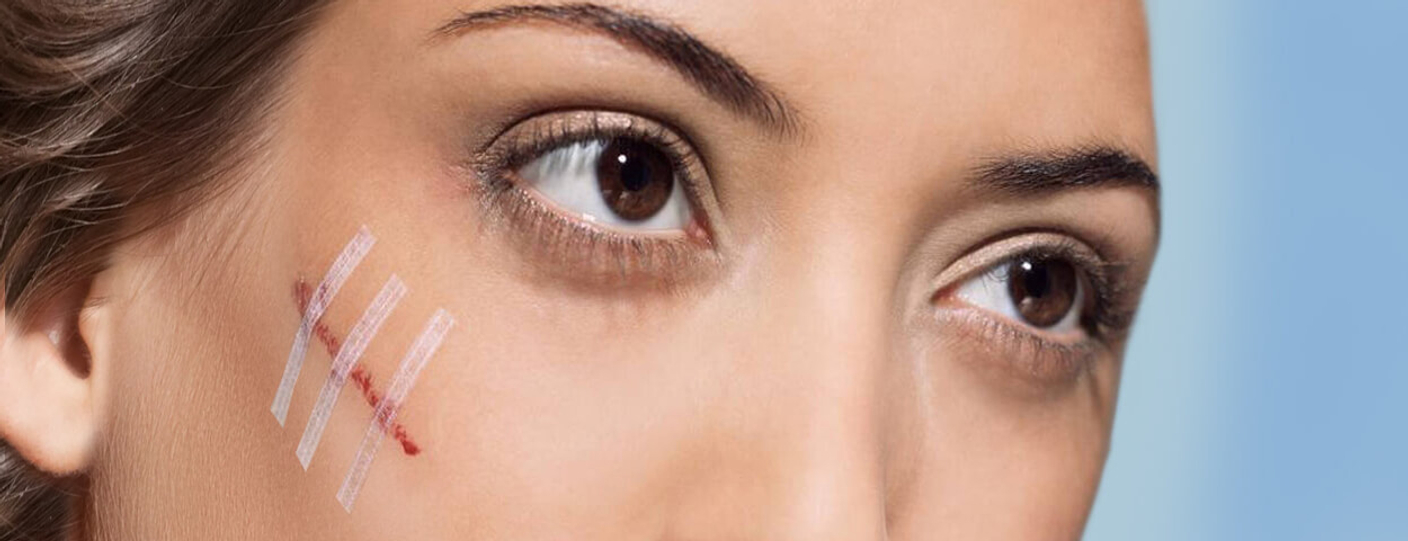 При бесшовном соединении краев раны удобнее использовать стерильные пластыри Стрипс от бренда Optimelle. В качестве временного решения подойдут полоски обычного лейкопластыря.