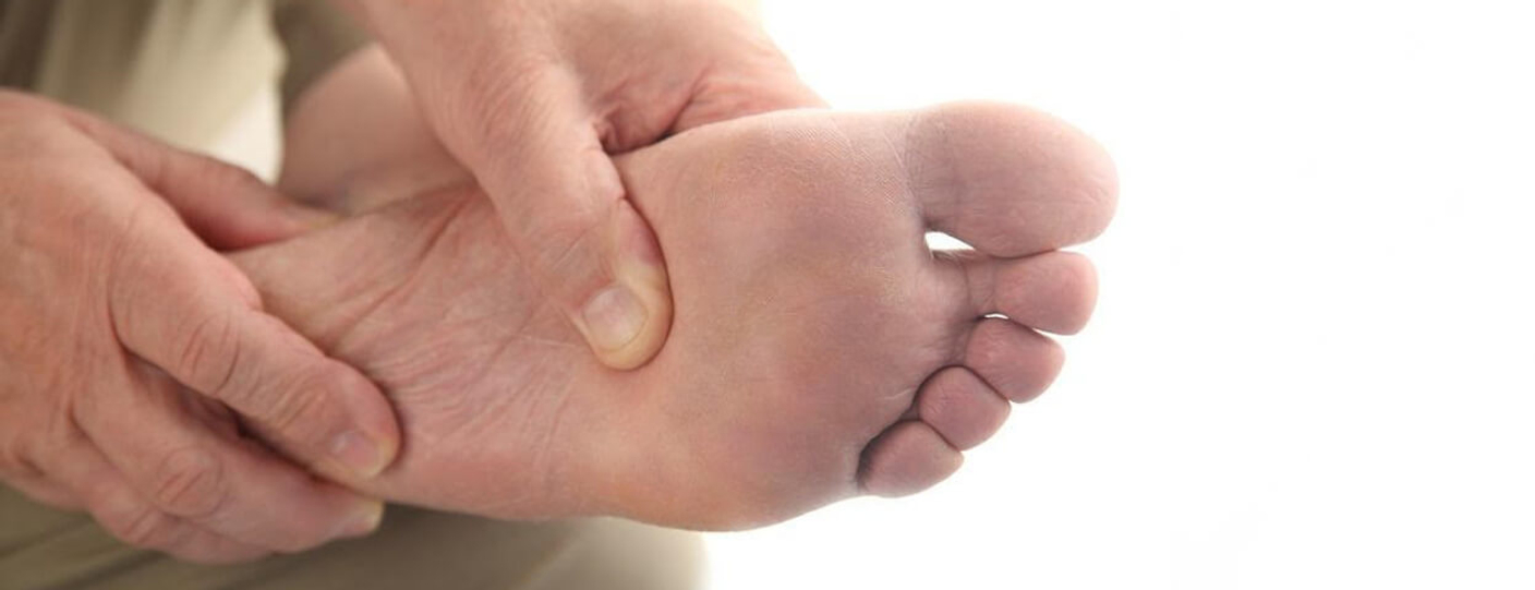 - Нейропатическая форма является следствием нейропатии, сдавления тканей, их деформации, инфицирования и отека. Язвенный дефект возникает в тех участках стопы, на которые приходится максимальная нагрузка. В 70% случаев данная форма заболевания диагностируется преимущественно у лиц до 40 лет с диабетическим стажем 5 лет и более, нередко злоупотребляющих алкоголем. Как правило, язвы локализуются в зонах повышенного давления, местах гиперкератоза, на подошве, в области межпальцевых промежутков, в участках выраженной деформации стоп. При пальпации безболезненны. Больные предъявляют жалобы на парестезии (ощущения покалывания, пощипывания, жжения в пораженных участках) и интенсивные ночные боли. Кожа конечностей сухая, теплая, пульсация на периферических артериях стоп сохранена, чувствительность (болевая, температурная и вибрационная) снижена, пяточный и коленный рефлексы ослаблены, мышцы атрофированы, стопа деформирована, определяется остеоартропатия.