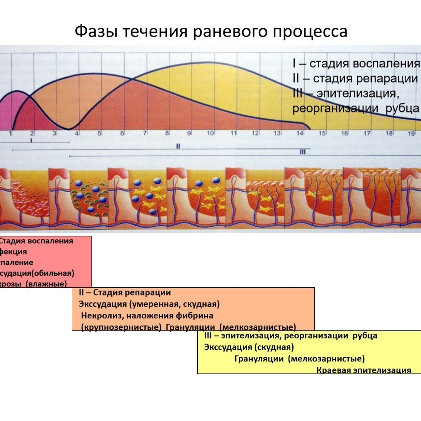 - фазы раневого процесса и заживления ран